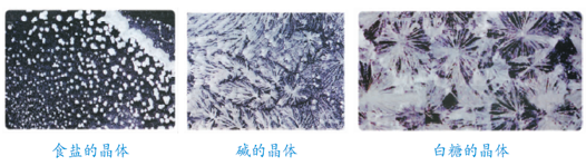 P8制作一些浓的食盐、食用碱或味精的溶液,用滴管滴几滴在玻璃片上,待水分自然蒸发后,用放大镜观察它们在玻璃片上留下的痕迹,看看是什么样的?