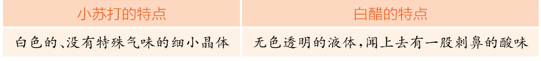 P32观察小苏打和白醋有什么特点,记录在下面的表格里。