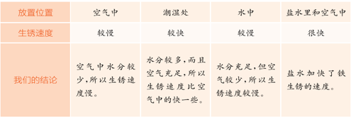 铁生锈的快慢与水的多少关系很大,在盐水里的铁生锈速度最快。把空气和水分与铁隔离可以达到防止铁生锈的目的。