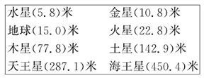 解析:以海王星为例,它与太阳的平均距离为450400万千米,按比例缩小即除以1000万千米,为450.4米,其他行星以此类推。