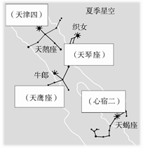 (4)“夏季大三角”由织女星、牛郎星和天津四组成,涉及天琴座、天鹰座和天鹅座。