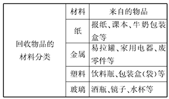 (3)√ 解析:回收垃圾的过程就是经过集中分拣,将有利用价值的材料回收利用,将其他垃圾分类整理的过程。