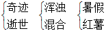 四、支出 凶恶 稀疏 坦然 勤奋 惊慌 熟悉 邪恶 杂乱无章 惊慌失措 光芒万丈 地动山摇