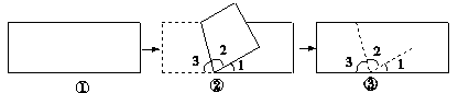将图①折起来以后得到图②,由此可知∠2=∠3,将图②展开之后得到图③,由此推出∠3+∠2+∠1=180°,因为∠1=30°,所以∠3+∠2=2∠2=180°-30°=150°,∠2=150°÷2=75°。