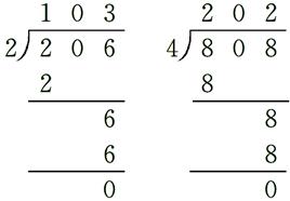 206÷2=103 808÷4=202