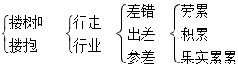 1.可爱的小鸟迅速地飞到高大的树上。 2.巢搭在树枝上。 3.这只贝被孩子们捡起来。 4.标本室里有垂柳叶、桑叶、薄荷叶等叶子标本。