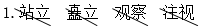 【解析】1.此题是考查对词语的理解。“站立”表示“站”,不带有感情色彩。“屹立”表示“像山峰一样高耸而稳固地立着”,含有褒义。“矗立”表示“高耸地立着”,多用于形容建筑物。“凝视”表示“聚精会神地看”,常表示含有一定的感情。“观察”表示“仔细察看(事物或现象)”,不含有感情色彩,带有探究的成分。“注视”表示“注意地看”,强调看的状态。