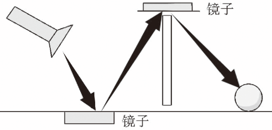 解析:画图时,光线需经过两面镜子的反射,要注意光的传播路线是直线,反射光线也是直线,光线最后落在小球上。