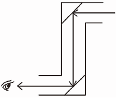 解析:画图时,光线从眼睛后方射入,经过镜片的两次反射,传入眼中。