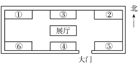 分析:如下图所示,以展厅为中心,画出八个方向,然后根据描述即可得出答案。