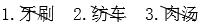3.“饭碗、菜碟、汤勺”是餐具,而“肉汤”是食物,所以“肉汤”不是同类的词语。