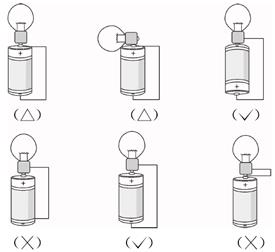 (4)× 解析:只有把小灯泡和电池连接到一起,并形成让电流流动的封闭电路,小灯泡才能发光。