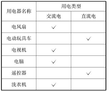 解析:玩具车、遥控器用的是干电池,直流电;风扇、电视、洗衣机和电脑用的是家庭的220V的交流电。