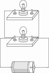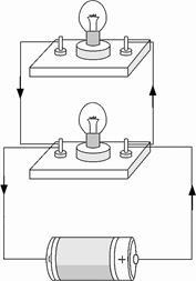 解析:一节电池和两个小灯泡有串联和并联两种连接方式。画电路图时,把两个小灯泡串联、并联。画电流路径时,先从电池的正极出发,流经两个灯泡,再流回电池的负极。