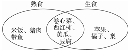 解析:一般情况下肉类都是熟食,水果类都是生食,青菜既可熟吃又可生吃。