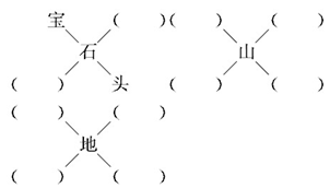解析 这道题是让同学们根据中间的字进行扩词练习。大家仔细观察后会发现:“石”在每个词中的位置是有规律的,在后如“宝石”,在前如“石头”。发现规律后,我们再按这个规律来填剩下的空。