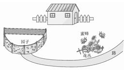 路边的花丛―→花丛里有蜜蜂采蜜―→蜜蜂采了蜜就飞进一个园子―→园子旁边有所小房子―→找到养蜂的人。