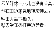 答案 三个句子去掉带点的词语后,意思和原来句子的意思就不一样了。第一个句子去掉“好像”一词后,就是肯定禾苗没有长高的意思,而原句表达的意思是说禾苗是在长的,只是长得缓慢,那个人感觉不到禾苗在长;第二个句子去掉“焦急地”以后,那个人在田边怎样转来转去就不具体了,就不能表达出他非常急切的心情;第三个句子里的“整天”是说种田人一天到晚地等着,可见他十分愚蠢,去掉这个词后,种田人什么时间坐在树桩旁等着,等待的时间长短就不清楚、不具体了。