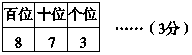分析:本题考查了学生对数位及数位上数的意义的认识和理解。用3、7、8这三个数字组成不同的三位数。因为每个数字只能用一次,所以要想使“3”表示3个一,则“3”应该在个位上,“7”和“8”则分别应在百位或十位上,组成的三位数应是783或873。要想使“3”表示3个十,则“3”应该在十位上,“7”和“8”则分别应在百位或个位上,组成的三位数是738或837。要想使“3”表示3个百,则“3”应该在百位上,“7”和“8”则分别应在十位或个位上,组成的三位数是378或387。