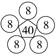 通过分析,看到36周围有4个○,40周围有5个○,24周围有6个○,因为每个数周围的○里填的是相同的数,而且○里填的数相加的和等于中间数,就是把中间的数平均分成○的个数份,那么就可以把数周围○的个数看是除数。即36÷4=9,○里填的就是9;40÷5=8,○里填的就是8;24÷6=4,○里填的就是4。