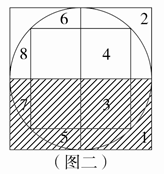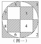 分析:观察图形,把原图中的两条直径当做对称轴,对称轴两侧相对应的区域形状和面积相同。按如下方案平移对换:1区和2区对换;3区和4区对换;5区和6区对换、7区和8区对换,图一可变成图二。所以阴影部分的面积和空白部分的面积相等。