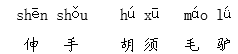 解析 同学们首先要把这些词语多读几遍,读的时候要注意“伸手”的“伸”是翘舌音;“毛驴”的“驴”读lǘ。书写时注意“闲”里边的“木”最后一笔是点不是捺;“驴”的“马”做偏旁时,最后一笔是提。