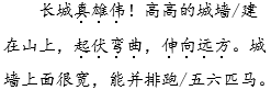 解析 朗读时,要根据不同的内容读出不同的语气。如第2自然段的前两句、第3自然段第2句应读出惊喜的语气,以突出长城的雄伟;妈妈的话要读得略慢些,语气要平和;最后一段要读出自豪、激动的语气,语调应略高些。