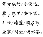 解析 课文第1小节和第6小节的前两行内容是相同的,这两个小节可以放在一起背诵。第2~5小节可以根据蒙古族、维吾尔族、藏族、傣族4个少数民族小朋友家的样子,按顺序抓住重点词语进行背诵。