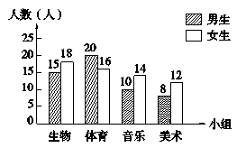 (3)(答案不唯一)参加体育小组的男生比参加音乐小组的男生多多少人?