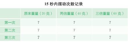 P61不改变摆锤的重量,把绳子增加到原来的两倍,同样观察摆在15秒内摆动的次数。看看加长绳子会不会影响它摆动的快慢?
