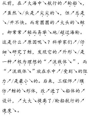 解析 本文是一篇有关仿生学的文章。朗读基调是对科学的热爱和执著的追求精神,语气平和舒缓,语调稍稍上扬。朗读时,抓住关键词句,加重语气。如“原来,每只蜻蜓的翅膀末端,都有一块比周围略重一些的厚斑点,这就是防止翅膀颤抖的关键所在”,再如“流线体”“薄壳结构”等都要加重语气。