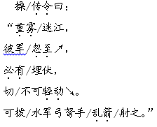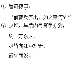 解析 本文属于原著的节选,古代汉语与现代汉语有很大差别。要多读,结合注释或相关资料,充分理解句子的意思,并注意断句,如,“倘/曹兵/齐出,如之/奈何?”