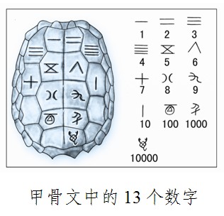 从当前已经发现的陶文和甲骨文中,可以看到当时已能够用一、二、三、四、五、六、七、八、九、十、百、千、万等十三个数字,记十万以内的任何自然数。这些记载文字的形状,在后世虽有所变化而成为现在的写法,但记数方法却从没有中断,一直被沿袭,并日趋完善。十进制的记数法是古代世界中最先进、科学的计数法,对世界科学和文化的发展有着不可估量的作用。