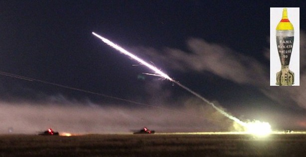照明弹能产生强烈的光亮,是由于它的内部有特殊的照明装置和照明剂。他们燃烧时,能产生几千度的高温,放射出耀眼的光芒,并能有一定的燃烧时间。当照明弹射出飞到预定的空域后,弹丸中的时间引信开始点火,引燃照明剂,照明弹下面的降落伞打开,照明盒连同燃烧弹的照明剂徐徐降落,白炽的光芒便撒向大地。