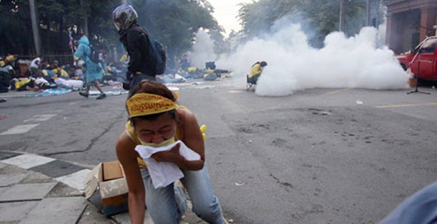 催泪弹是一种能使人流泪的武器,因为在它体内装着一些化学物质。这些化学物质一旦释放出来,就能刺激人的眼睛,使眼睛灼痛、怕光和大量流泪。只要离开释放区,这些症状就能呢个自行消失,一般不会造成眼睛实质性的损伤。