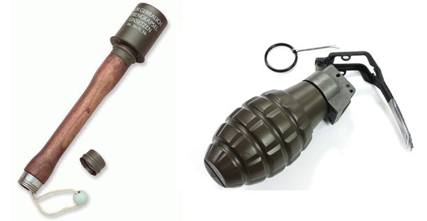 手榴弹是一种用手投掷的弹药。在手榴弹的木柄上面,藏了一个专管点火的引爆物,也就是拉火环。当扔手榴弹时,打开弹盖,把拉火环套在小手指上,利用向外扔手榴弹的力量,牵动拉火绳,像划火柴一样点着了火;引信延期时间大约4秒,手榴弹正好落在敌人中爆炸。所以,手榴弹一扔即能爆炸。