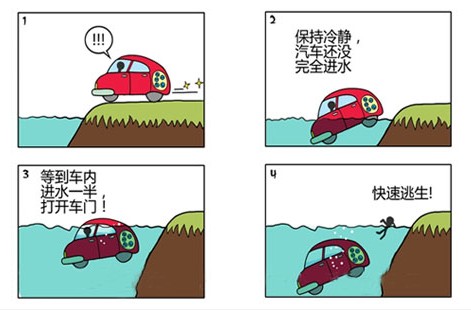 3、逐渐下沉中,车身孔隙不断进水,到内外压力相等时,车厢内水位才不再上升。这段时间要保持镇定,耐心等待。内外压力不等时,欲强行打开车门反而会方寸大乱,减少逃生机会。