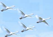 天鹅是一种冬候鸟,喜欢群栖在湖泊和沼泽地带,主要以水生植物为食。一过十月份,它们就会结队南迁,排成“一”字或“人”字队形,边飞边鸣。在南方气候较温暖的地方越冬,养息。