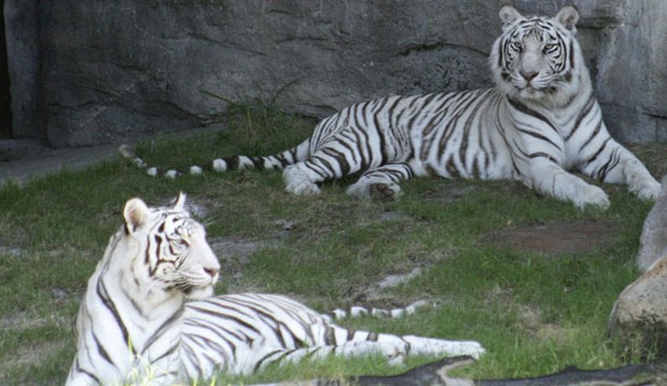 不要以为白虎是老虎的一个新品种,事实上它们都是孟加拉虎的变种,这是由于基因突变而导致的后果。但白虎的这种变异会使它难以隐藏自己,让它在自然环境中难以生存。白虎非常稀少,条纹为深褐色或黑色,其余全为白色,眼睛为蓝色。