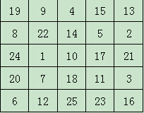 舒尔兹表格游戏是指将一系列数字随机放在表格中,让孩子按顺序找到这些数字的游戏。例如:1到25这些数字随机放在5×5的表格中(如左图),孩子就要从1依次找到25。记录孩子每次用的时间,有进步就给予表扬。