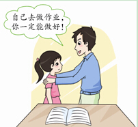 家长要帮助孩子树立自信心。孩子写作业离不开家长,很大原因是对自己的能力缺乏自信,所以家长应经常鼓励孩子,诸如“你能做好”“我们相信你”等,树立其自信心,鼓励孩子独立完成作业。