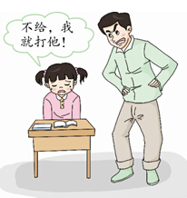 可是第三次,那个同学又来借,丽丽想他不会再弄坏了,而且又不敢不借给他,于是又把新买的削笔刀借给他。那个同学用了一天都没还。丽丽回家后,感觉自己受了欺负,委屈地哭了。把事情告诉爸爸,爸爸二话没说就大骂起来:“你真完蛋,干吗又借给他啊?你怕死啊,他能吃了你啊……”连珠炮似的一顿骂,丽丽哭得更厉害了。“明天我就去学校找你们老师评理,欺负我的宝贝不好使!别哭了宝贝,明天我去替你出气!”爸爸气愤地说着。丽丽听了爸爸的话有些高兴了,停止了哭泣,听到爸爸说给出气,刚才胆怯的心理似乎有点安慰了,大声说:“他不给,我就打他!”