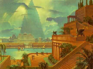 这座神话般的建筑是尼布甲尼撒二世为他的一个妃子修建的,大约120米见方,高出地面20多米。据说它要由奴隶们转动机械装置从下面的幼发拉底河里抽上大量的水来灌溉花园里的花草。