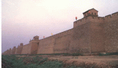 平遥城墙 建于明洪武三年(公元1370年),位于山西省平遥县。周长6公里,高8----10米,底宽8----12米,顶宽3----6米,墙身素土夯筑,外壁城砖,白灰包砌。环城辟城门6道,门外筑瓮城。平遥城墙马面多,造型美观,防御设施齐备,为中国历代筑城之仅有,并以筑城手法古拙著称于世。现北、东、南三面城墙及东西隅的魁星楼,经修整而更加完好。