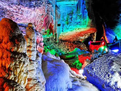 各厅的景观各具特色。通天大厅有形状各异的石钟乳,洁白如凝脂,似经人工雕琢,玉笋、玉柱、玉塔、玉林、玉幔、冰川、玉山等知姿百态,如人坐卧,如鸭浮水,如鸟飞翔,如山上倾注的"瀑布",形象逼真,妙趣横生。迎宾大厅可容纳200-300人,其中有玉佛屏风、群星拜寿、西天取经、雄狮登塔、九龙戏水、玉蛇卧饮、玉树生花、龟鱼相戏、凤凰展翅等天然图案,鬼斧神工,蔚为奇观,令人感叹大自然的"雕塑"艺术。洞外还有杜甫故居、北宋皇陵、摩崖造像石刻、石窟寺等名胜古迹。
