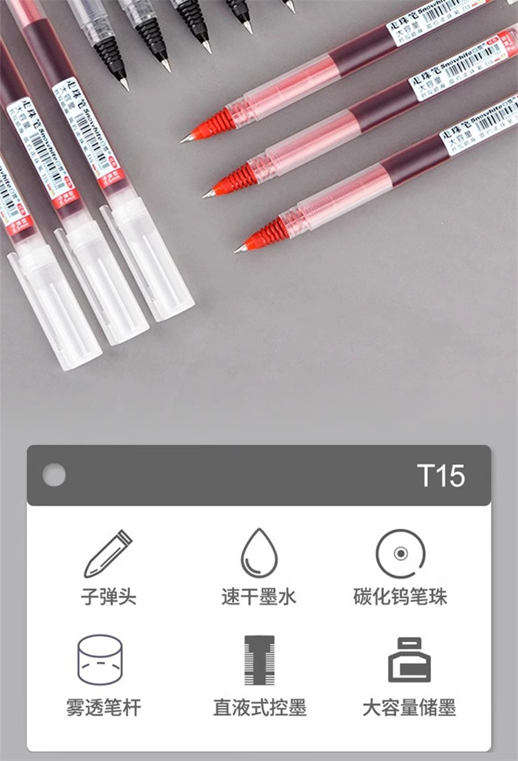 T15直液式走珠笔中性笔高颜值圆珠笔ins日系红笔黑笔签字笔