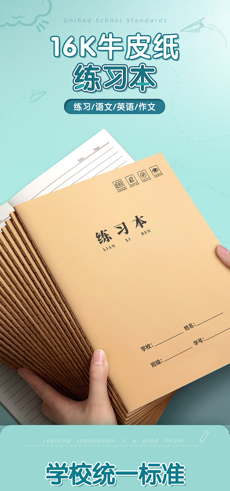 16K练习本加厚牛皮纸作业本子小学生初高中生作文语文数学横线簿