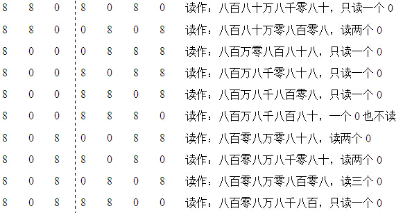 (2)读两个0的数:8800808 8080088 8088080(答案不唯一)……(4分)