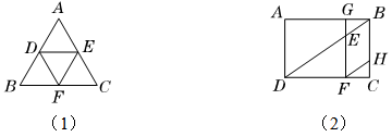 按照定义判断,如图(2),图中的梯形有梯形GEDA、梯形HFDB、梯形BHFG、梯形EFCB,共4个。