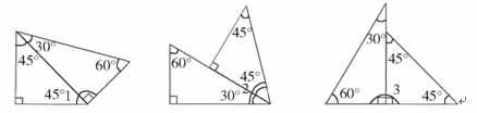 6.分析:两个三角尺一个是等腰直角三角形,另一个是含有一个30°角的直角三角形。观察图,计算可知∠1=90°+45°=135°,∠2=30°+45°=75°,∠3=90°+90°=180°。